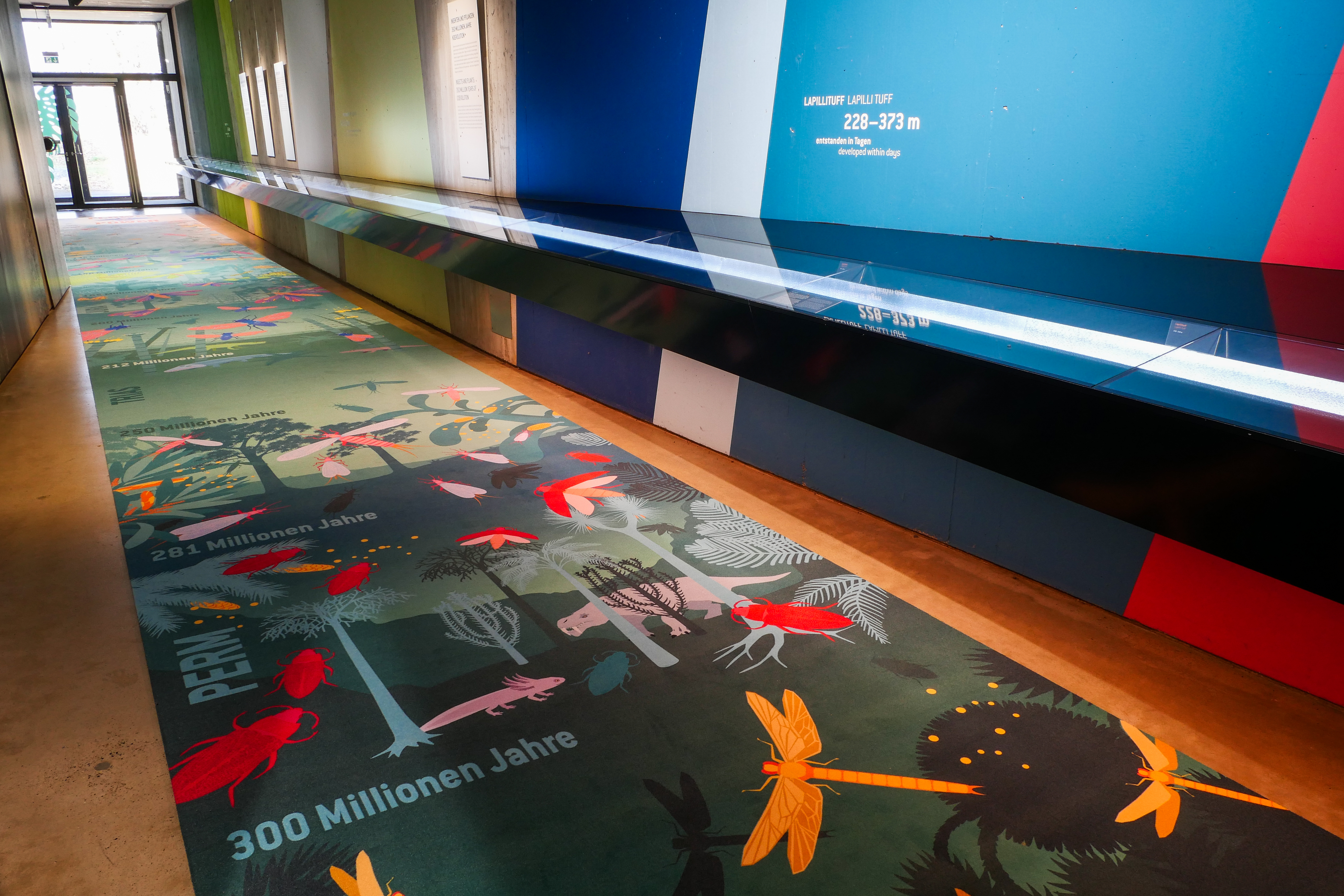 Pressebild 1: Die Geschichte der Pflanzenbestäubung auf 20 Metern Teppich. Gestaltung des Teppichs: Andrea Thiele, Foto: WGM, Wencker